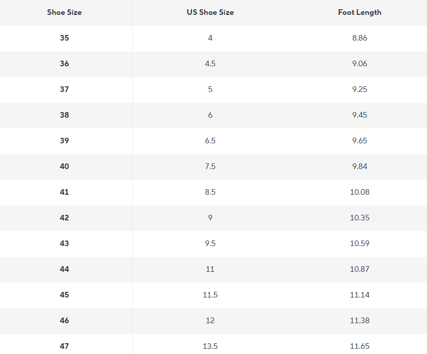 Sizing Chart